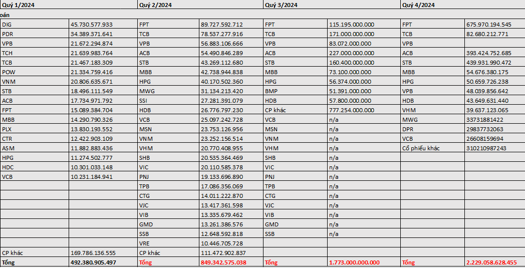 → Ví dụ: SSB đã bị loại khỏi danh mục từ Q3 → Q4/2024.