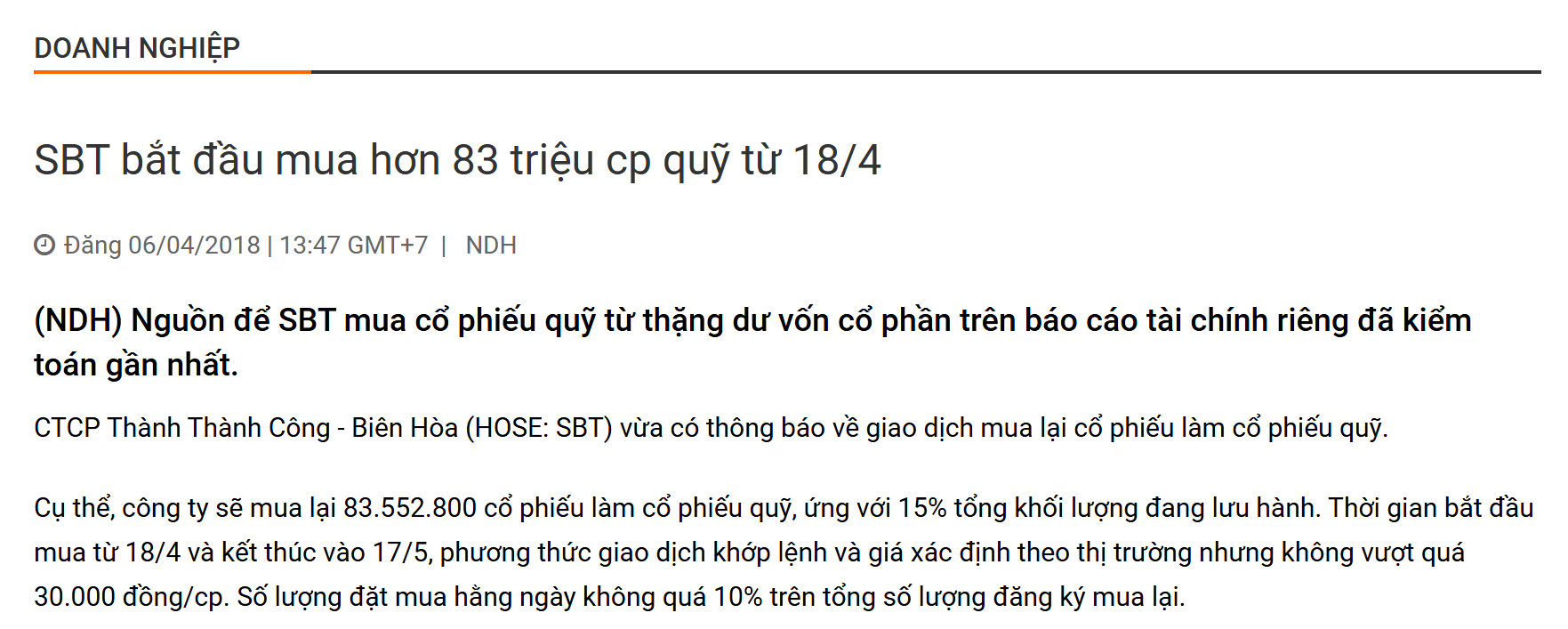III. Bài Học Từ Quá Khứ: Case Study của SBT (18/4/2018)