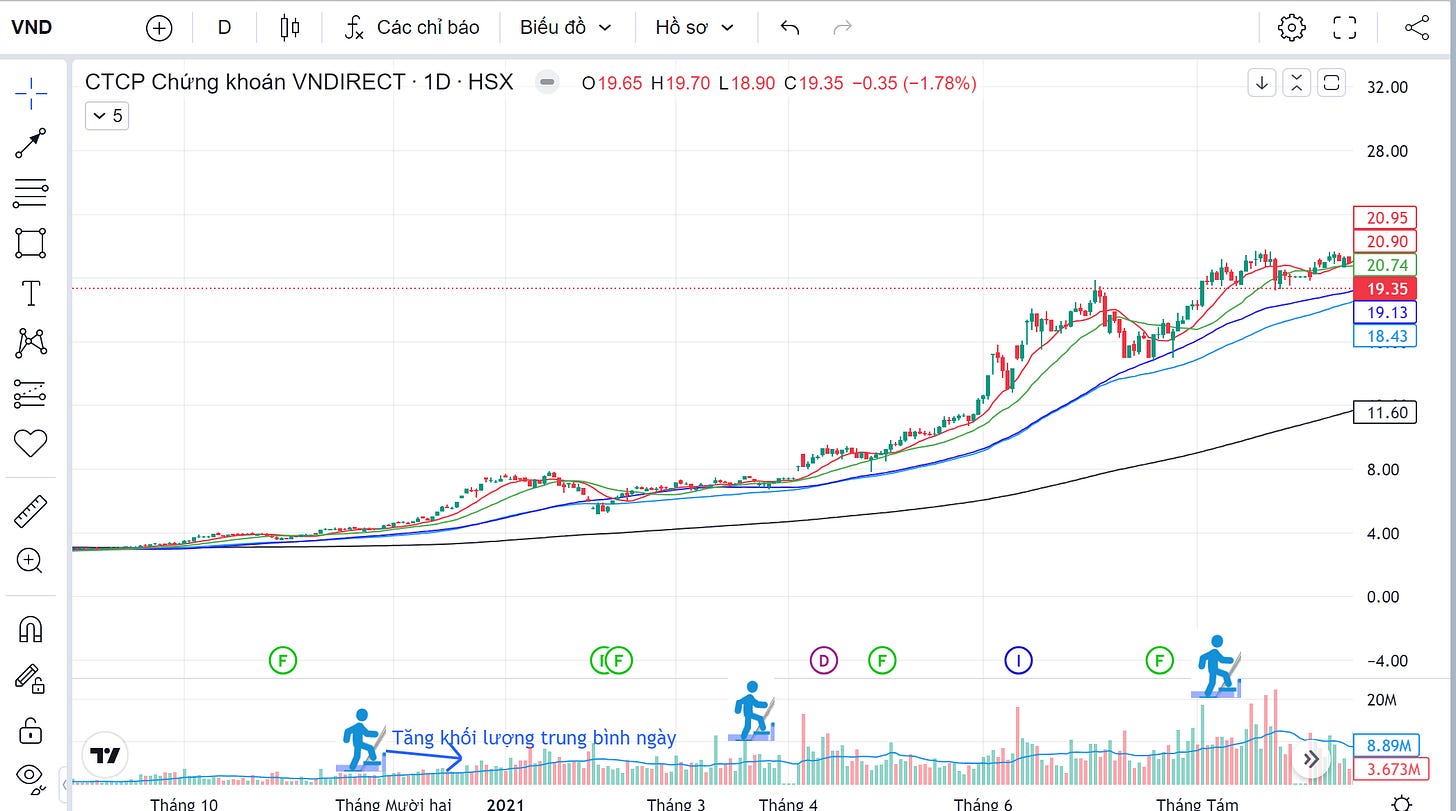 Tăng khối lượng trung bình hàng ngày ở cổ phiếu VND: